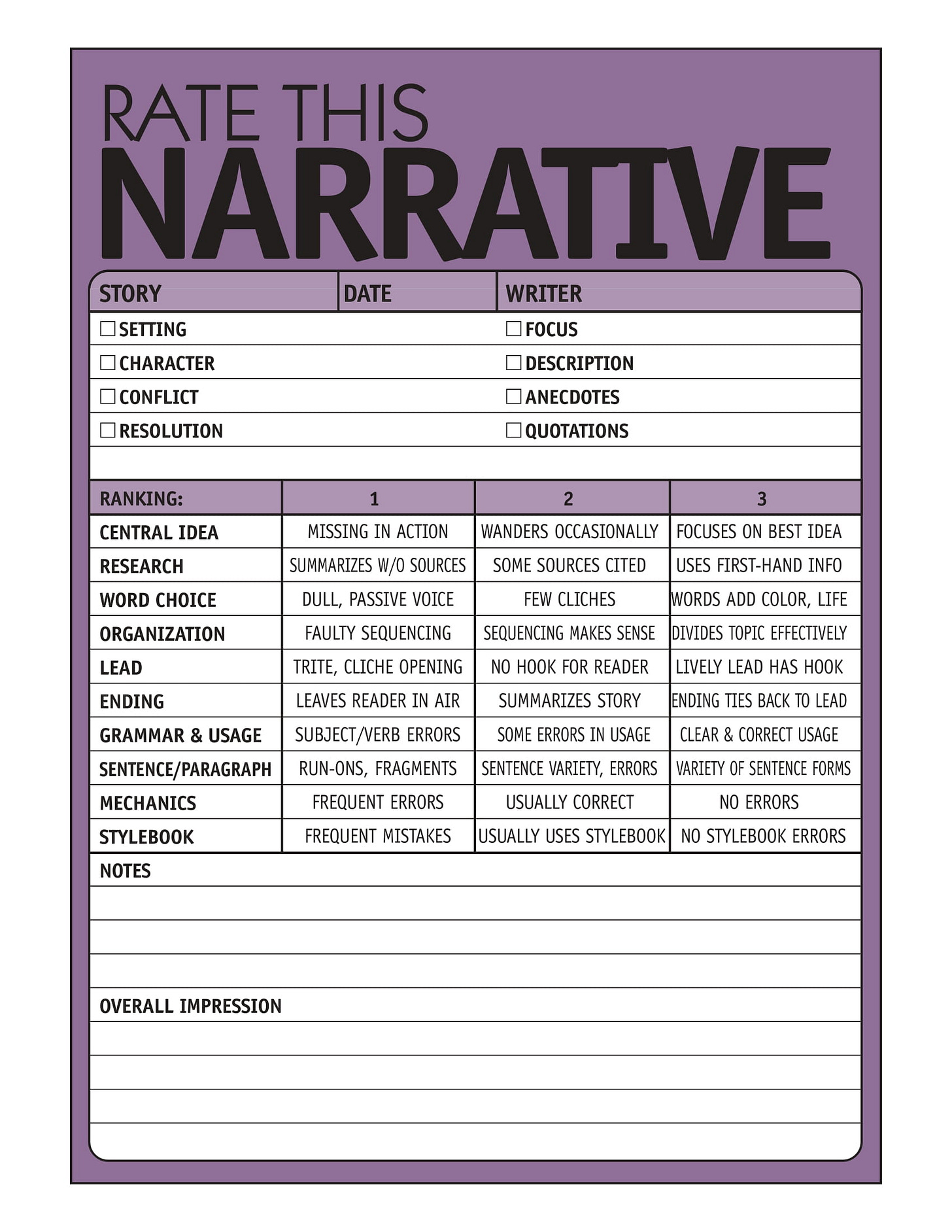 THE STORY EVALUATION CHECKLIST: