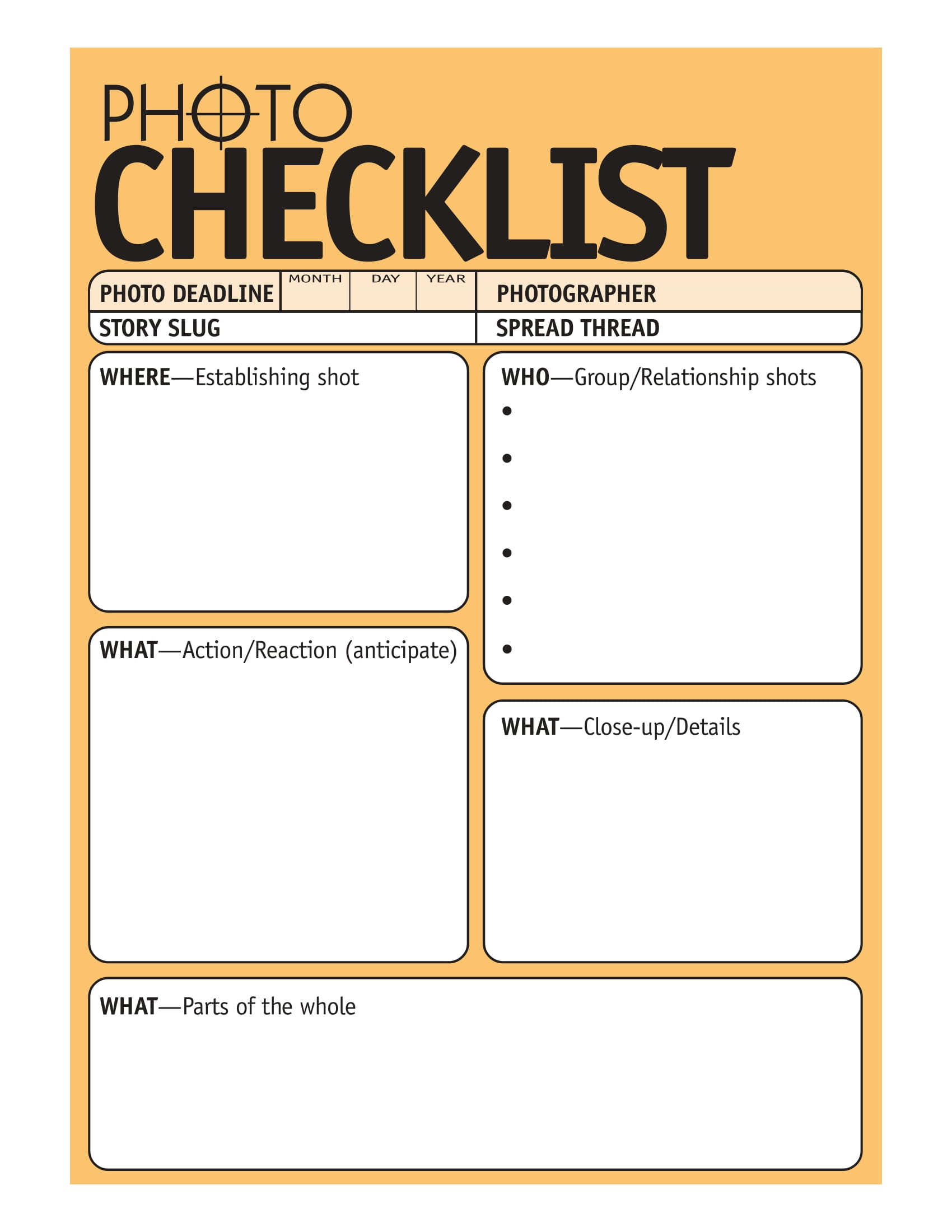 THE PHOTO CHECKLIST: